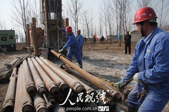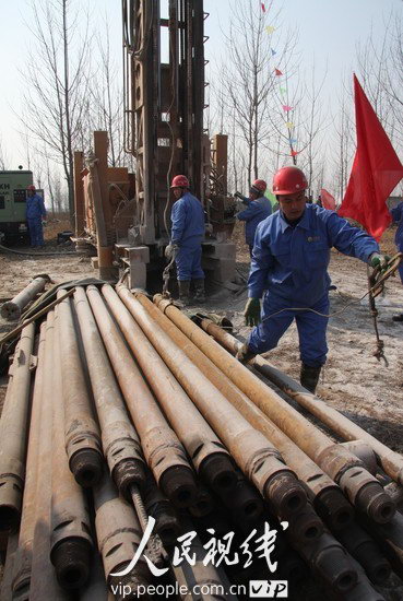 2ÔÂ15ÈÕ£¬É½¶«Ê¡µØ¿ó¾ÖË®ÎĵØÖʹ¤³ÌµØÖÊ´ó¶ÓµÄ¹¤ÈËÔÚÑÏÖØÈ±Ë®µÄÁÙÒÊÊÐÒÊÄÏÏØÇàÍÕÕòÌÒ»¨²º´å´ò¾®¡£