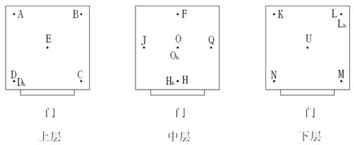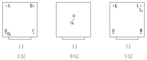 工作室容积大于2m3时,温度测量点为15个,相对湿度测量点为4个,位置如图2。