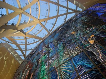 ¡¡¡¡±»ÇиÀ´µÄС²£Á§£¬×îºóÆ´×°ÆðÀ´£¬×é³ÉÁË¡¶ÉúÃüÖ®Ô´¡·¡£16Ã׸ߵıڻÉÏ£¬»ã¼¯ÁË30Íò¿éÇиî³É¸÷ÖÖÐÎ×´µÄС¿é²ÊÉ«²£Á§¡£ÎªÁËÈÃ×÷Æ·¿´ÆðÀ´¸üͨ͸£¬²ÊÉ«²£Á§Ã»ÍùǽÉÏÌù£¬¶øÊÇÌùÔÚÁ˰ë͸Ã÷µÄÎÞÉ«²£Á§ÉÏ¡£
