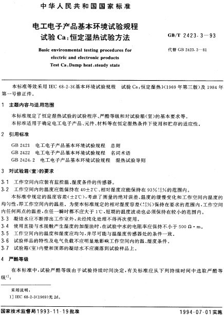 GB/T 2423.3-93µçʽµç×Ó²úÆ·ºã¶¨ÊªÈÈÊÔÑé·½·¨