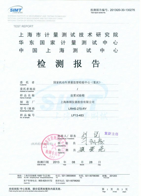 ÖйúÆû³µ¹¤³ÌÑо¿Ôº¹É·ÝÓÐÏÞ¹«Ë¾£¨¹É·Ý´úÂ룺601965£©Ê¼½¨ÓÚ1965Äê,×¢²á×ʽð6.4ÒÚ,Ϊ¹úÄÚÖ÷ÒªµÄÆû³µÑз¢»ú¹¹Ö®Ò»£¬²¢±»¿Æ¼¼²¿ÊÚÓè¡°¹ú¼Ê¿Æ¼¼ºÏ×÷»ùµØ¡±£¬ÈÕǰ,ÒòÊÔÑéÊÒ¼ì²âÌõ¼þÐèÒª£¬ÔÚÎÒ˾¶¨¹ºÒ»Ì¨ÑÎÎíÊÔÑéÏ䣨ÐͺÅLRHS-270-RY£©,¾­ÄÚ²¿±ê×¼²âÊÔºóÔÙËÍÈëµÚÈý·½¼ÆÁ¿²¢³ö¾ßºÏ¸ñ±¨¸æ£¬´Ę̈²úÆ·½«·ÅÖÃÓÚ¹ú¼Ò»ú¶¯³µÖÊÁ¿¼à¶½¼ìÑéÖÐÐÄ£¨ÖØÇ죩¼ì²âʹÓá£