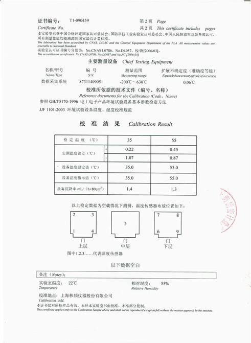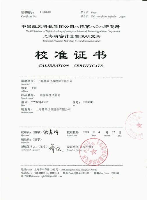 > 林频股份—盐雾腐蚀试验箱校准证书